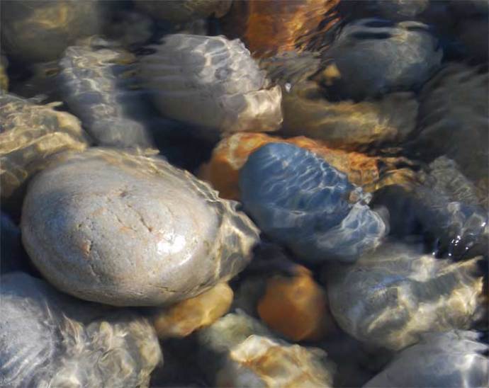 To become this new smooth contour the pebble has been shaped by the elements and in doing so has also lost some parts of itself into the environment around it. The minute sand that has slowly washed of its rough surface has now become a part of the sand it lies on, the soil of the tree under which it is shaded, and the very essence of its own surroundings.